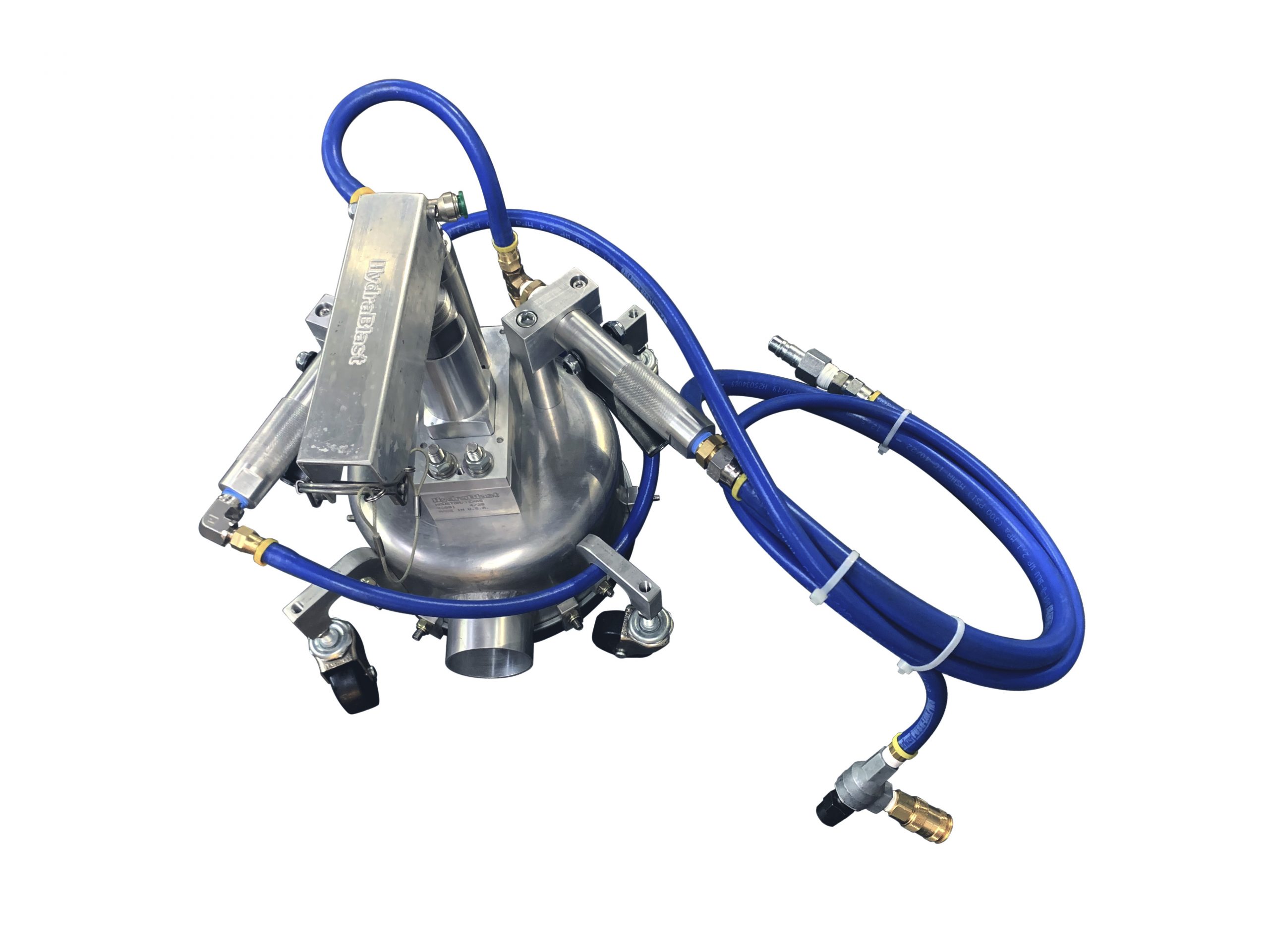 HydraBlast’s mini-scrubber is a great alternative to guns in applications that have the space. Hand-held with a 6″ spray bar, the cleaning rates can increase by as much as 3x what your blasters get.