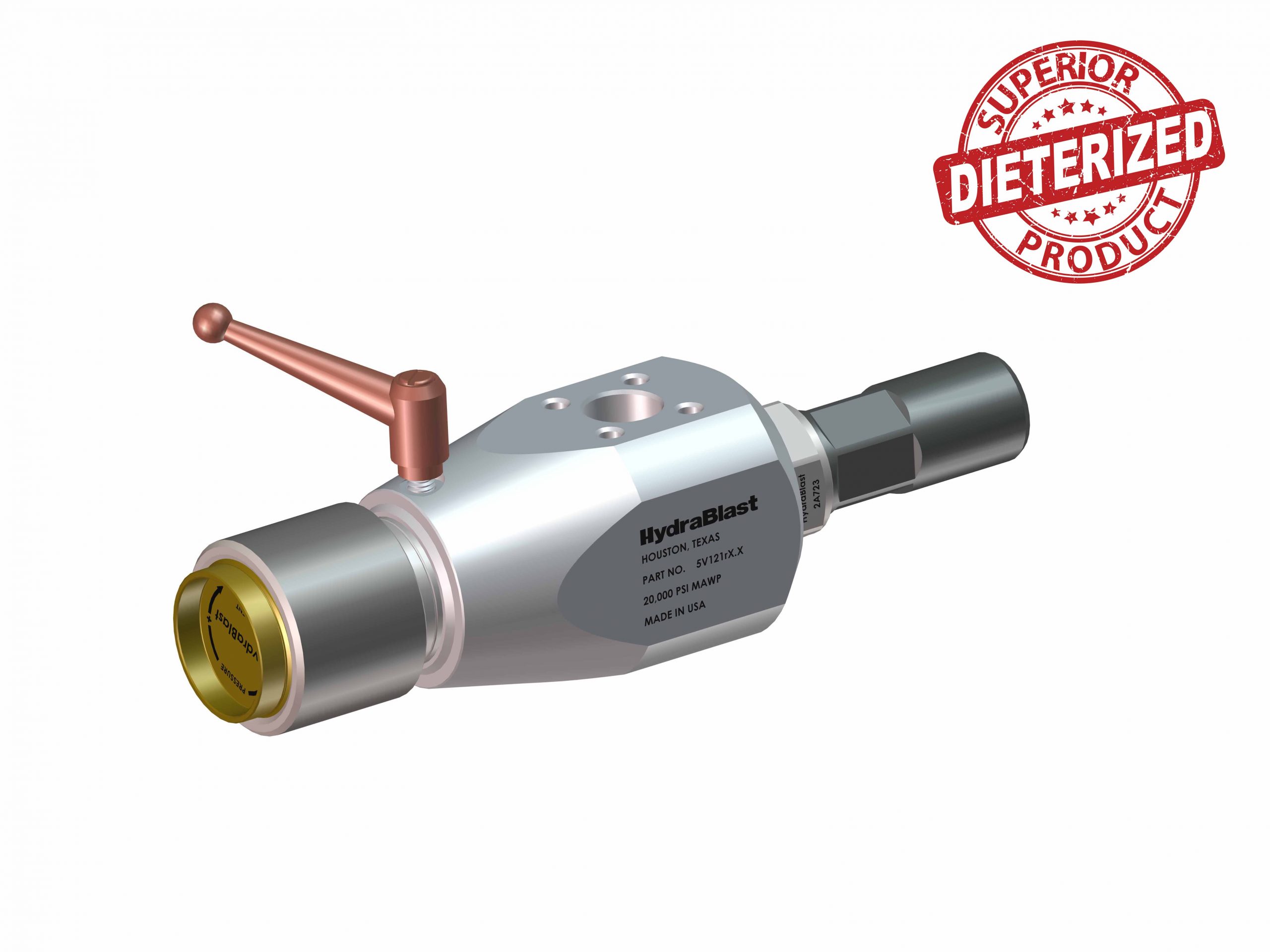 HydraBlast’s Diverter valve is a multi-use water blasting tool designed to withstand water pressure up to 55KSI. It is a Tri-mode valve with three functions. In single gun operation, it can be used as a dump valve to drop pressure off the system. In multi-tool operation, it is used to balance the system and ensure each user has desired pressure (each tool needs a Diverter Valve). In a system with an external compensating valve (ECV) it can function as an on-off valve.